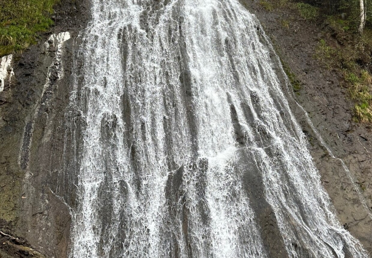 Первая остановка ворота Тории. Это символический вход в синтоистский храм. Ворота построили в 1940 году. В то время здесь находился японский порт, останки которого Вы можете наблюдать до сих пор. Далее мы с Вами заедем на крабовый рынок, выберем парочку крабов к нашему обеду и отправимся смотреть Клоковский водопад. Ехать до него примерно час. Водопад является одним из самых высоких на Сахалине. Расположен на ручье без названия, недалеко от мыса Клокова, поэтому и получил свое название «Клоковский». Водопад высотой около 49 метров, но видно только 35, остальная часть скрыта за деревьями.