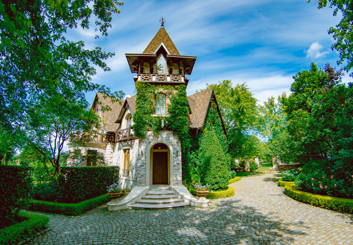 На холме был построен дом в англо-нормандском стиле, а сад устроен в виде системы многоярусных террас. У каждой из них — своё предназначение и своё настроение. Растения в парке подобраны с учётом местного климата, а особое внимание при их подборе было уделено тому, чтобы сад сохранял свою декоративность в течение всего года.
